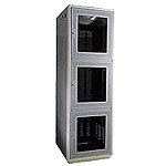 FE5019-45-02 Color: Black Features: -Three individual modules to use at your discretion.-Each section is independently accessed via its respective door and individually keyed.-Removable side and rear panels are provided utilizing dual latching keepers and keyed for security.-Top and bottom panel features cutouts for cable access.-Features fully adjustable internal equipment cage nut rails for #12-24 mounting screws in EIA universal spacing for each section.-Each enclosure supplied with cage nut hardware set.-Meets or exceeds EIA310D standards.-Ships fully assembled.-Format & RUs: 19'' Format / 45 RU.-Load capacity: 920 lbs.-Structure: 16.-Side Panels: 18.-Top Panel: 16.-Rear Panel: 18.-Front Door: 18.-Base: 14. Color/Finish: -Electrostatic microfinish paint. Dimensions: -Overall dimensions: 84'' H x 27.5'' W x 36'' D.