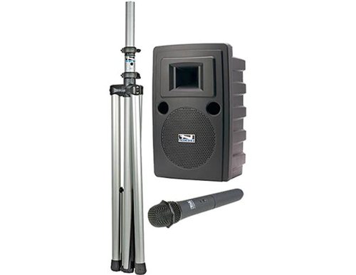 - Reach Crowds of 2,000+. - AC Mode = 125W / DC Mode = 100W. - Single or Dual Built-in UHF Wireless w/ 16 User. - Selectable Channels. - Built-In MP3 Player Accepts SD Card, USB Flash Drive or. - 3.5mm input for iPod. - USB Port for Charging MP3/iPod®. - "Voice Over" Music Ducking Feature. - Two Universal Mic Input Jacks.