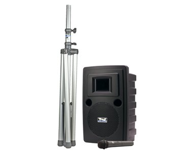 - Reach Crowds of 2,000+. - AC Mode = 125W / DC Mode = 100W. - Single or Dual Built-in UHF Wireless w/ 16 User. - Selectable Channels. - Built-In MP3 Player Accepts SD Card, USB Flash Drive or. - 3.5mm input for iPod. - USB Port for Charging MP3/iPod®. - "Voice Over" Music Ducking Feature. - Two Universal Mic Input Jacks.